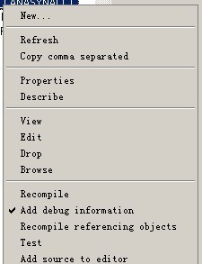 今天在用pl/sql调试一个新写的存储过程时,发现dubug断点不生效,后来咨询DBA,发现需要在在存储过程上右键打开调试信息才行,如下图: