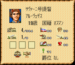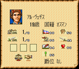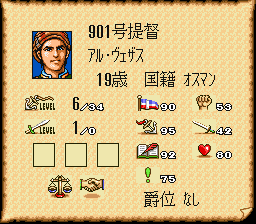 目标:以较短的游戏内时间完成,结局之前是公爵,全部的声望(交易声望、海盗声望、冒险声望)都是50000,学会全部3种可学习技能,本国贡献度100,他国没有负数贡献(红色的数值,也就是希望跟所有的国家都没有仇恨),不使用任何修改手段或金手指等。(大2有多个版本,这里只考虑sfc日版)