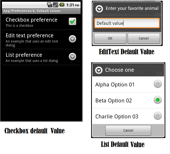 EditTextPrefernece显示一个文本框来接受用户输入: