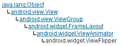 ViewFilpper 是Android官方提供的一个View容器类,继承于ViewAnimator类,用于实现页面切换,也可以设定时间间隔,让它自动播放。又ViewAnimator继承至于FrameLayout的,所以ViewFilpper的Layout里面可以放置多个View,继承关系如下: