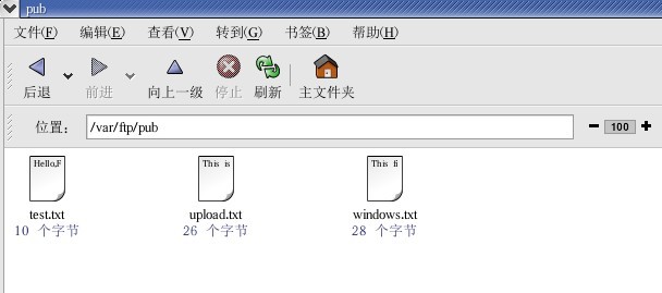 在FTP安装完成以后,在/var/ftp下有个pub目录,这是服务器目录,在浏览器里输入ftp://localhost可以看到pub