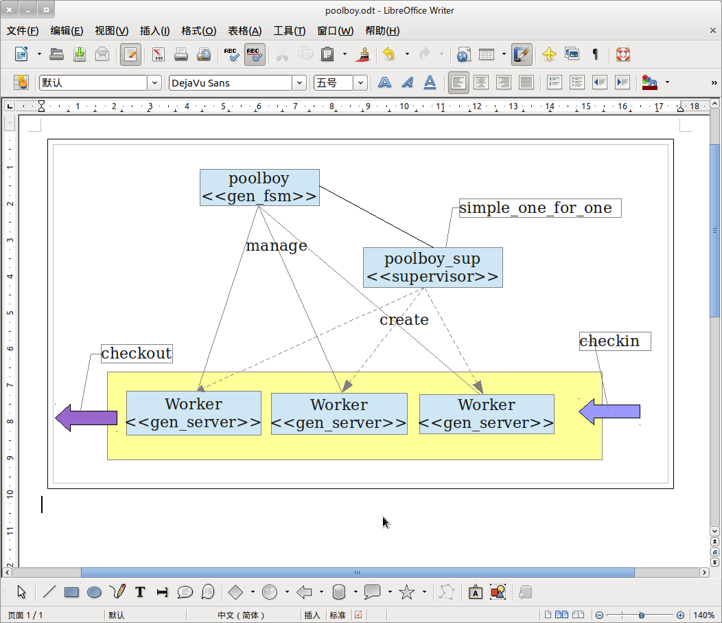 简单的说,每个进程池顶端是一个supervisor,它下面有一个gen_server和一个supervisor。后者是simple_one_for_one策略的supervisor,前者管理这个supervisor,例如,前者通知后者创建一个工作进程(通过supervisor:start_child启动工作进程)。