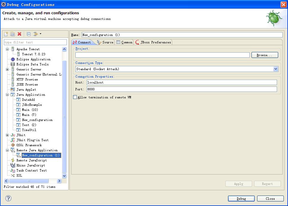 然后选择要调试的工程,输入IP和端口,点击debug即可