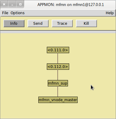 1) 在make前,修改rel/reltool.config,在sys的 {rel, "mfmn", ... } 列出的依赖库列表中加入appmon,这样make出来的应用就可以图形工具appmon察看进程了;