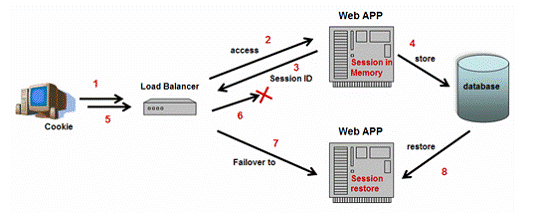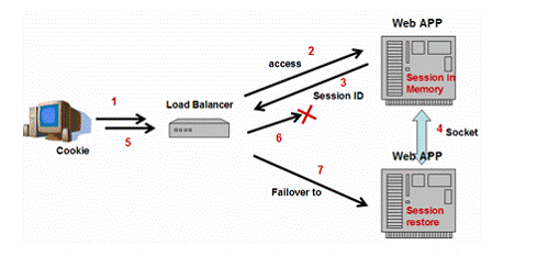 因 为会话状态存储在某个web服务器实例的内存中,“会话粘连”对于负载均衡非常重要。但,如果一台服务器实例因为某些原因失效(比如断电),那么该服务器 上多有的会话状态就丢失了。负载均衡器检测到了该失效,不再向其分发请求。但存储在失效服务器上的会话的那些请求将丢失会话信息,这种情况会引起错误,因 此会话失效转移到来了!