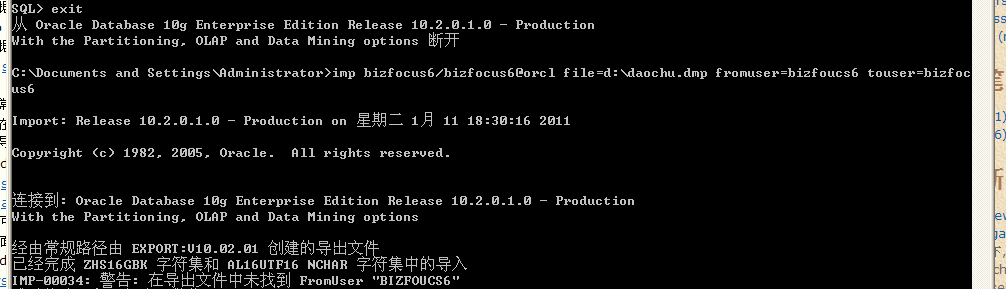 F:WorkOracle_Databackup>imp userid=test/test full=y file=inner_notify.dmp