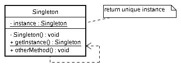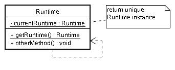 public class PrintSpooler { public PrintSpooler() { // .... } public Connection getSpooler(){ .... } } public class GlobalObject { private PrintSpooler printSpooler; public GlobalObject () { printSpooler = new PrintSpooler(); ... } public void getPrintSpooler() { return printSpooler; } } public class Runtime { private static Runtime currentRuntime = new Runtime(); public static Runtime getRuntime() { return currentRuntime; } /** Don't let anyone else instantiate this class */ private Runtime() {} // 以下略 }