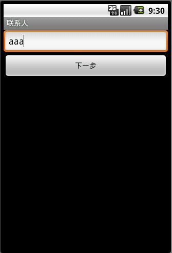 Intent it = new Intent(Activity.Main.this, Activity2.class);Bundle bundle=new Bundle();bundle.putString("name", "This is from MainActivity!");it.putExtras(bundle); // it.putExtra(“test”, "shuju”);startActivityForResult(intent, 0);Bundle bundle = getIntent().getExtras();String name = bundle.getString("name");<?xml version="1.0" encoding="utf-8"?><manifest xmlns:android="http://schemas.android.com/apk/res/android"package="iaiai.test" android:versionCode="1" android:versionName="1.0"><uses-sdk android:minSdkVersion="8" /><application android:icon="@drawable/icon" android:label="@string/app_name"><activity android:name=".MyList" android:label="@string/contact_title"><intent-filter><action android:name="android.intent.action.MAIN" /><category android:name="android.intent.category.LAUNCHER" /></intent-filter></activity><activity android:name=".TestWidget" android:label="@string/contact_title"></activity></application><uses-permission android:name="android.permission.READ_CONTACTS" /><!-- 在SD卡中创建文件与删除文件权限 --><uses-permission android:name="android.permission.MOUNT_UNMOUNT_FILESYSTEMS" /><!-- 往SD卡中写入数据权限 --><uses-permission android:name="android.permission.WRITE_EXTERNAL_STORAGE" /></manifest>