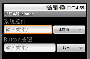 但发现一个问题,Spinner控件,很难控制其外观与显示大小,在同一个布局中,很难与其它控件外观协调起来。最后用Button控件模仿Spinner的效果,应用起来也较为方便。