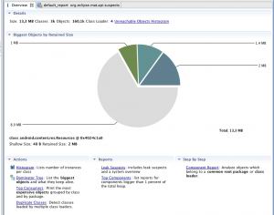 android中使用heap分析工具导出到MAT android中可以使用heap分析工具导出到MAT,方法为1) 在ECLIPSE工具栏中,选择如下图2 要将dalvik的导出到java格式的MAT,可以这样 hprof-conv dump.hprof converted-dump.hprof3 把hprof导入到MAT工具,可以得到图形分析
