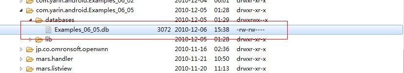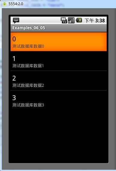 package com.yarin.android.Examples_06_05;import android.app.Activity;import android.content.ContentValues;import android.database.Cursor;import android.database.sqlite.SQLiteDatabase;import android.graphics.Color;import android.os.Bundle;import android.view.KeyEvent;import android.widget.LinearLayout;import android.widget.ListAdapter;import android.widget.ListView;import android.widget.SimpleCursorAdapter;public class Activity01 extends Activity{private static intmiCount= 0;/* 数据库对象 */private SQLiteDatabasemSQLiteDatabase= null;/* 数据库名 */private final static StringDATABASE_NAME= "Examples_06_05.db";/* 表名 */private final static StringTABLE_NAME= "table1";/* 表中的字段 */private final static StringTABLE_ID= "_id";private final static StringTABLE_NUM= "num";private final static StringTABLE_DATA= "data";/* 创建表的sql语句 */private final static StringCREATE_TABLE= "CREATE TABLE " + TABLE_NAME + " (" + TABLE_ID + " INTEGER PRIMARY KEY," + TABLE_NUM + " INTERGER,"+ TABLE_DATA + " TEXT)";/* 线性布局 */LinearLayoutm_LinearLayout= null;/* 列表视图-显示数据库中的数据 */ListViewm_ListView= null;/** Called when the activity is first created. */@Overridepublic void onCreate(Bundle savedInstanceState){super.onCreate(savedInstanceState);/* 创建LinearLayout布局对象 */m_LinearLayout = new LinearLayout(this);/* 设置布局LinearLayout的属性 */m_LinearLayout.setOrientation(LinearLayout.VERTICAL);m_LinearLayout.setBackgroundColor(android.graphics.Color.BLACK);/* 创建ListView对象 */m_ListView = new ListView(this);LinearLayout.LayoutParams param = new LinearLayout.LayoutParams(LinearLayout.LayoutParams.FILL_PARENT, LinearLayout.LayoutParams.WRAP_CONTENT);m_ListView.setBackgroundColor(Color.BLACK);/* 添加m_ListView到m_LinearLayout布局 */m_LinearLayout.addView(m_ListView, param);/* 设置显示m_LinearLayout布局 */setContentView(m_LinearLayout);// 打开已经存在的数据库mSQLiteDatabase = this.openOrCreateDatabase(DATABASE_NAME, MODE_PRIVATE, null);// 获取数据库Phones的Cursortry{/* 在数据库mSQLiteDatabase中创建一个表 */mSQLiteDatabase.execSQL(CREATE_TABLE);}catch (Exception e){UpdataAdapter();}}public boolean onKeyUp(int keyCode, KeyEvent event){switch (keyCode){case KeyEvent.KEYCODE_DPAD_LEFT:AddData();break;case KeyEvent.KEYCODE_DPAD_RIGHT:DeleteData();break;case KeyEvent.KEYCODE_1:UpData();break;case KeyEvent.KEYCODE_2:DeleteTable();break;case KeyEvent.KEYCODE_3:DeleteDataBase();break;}return true;}/* 删除数据库 */public void DeleteDataBase(){this.deleteDatabase(DATABASE_NAME);this.finish();}/* 删除一个表 */public void DeleteTable(){mSQLiteDatabase.execSQL("DROP TABLE " + TABLE_NAME);this.finish();}/* 更新一条数据 */public void UpData(){ContentValues cv = new ContentValues();cv.put(TABLE_NUM, miCount);cv.put(TABLE_DATA, "修改后的数据" + miCount);/* 更新数据 */mSQLiteDatabase.update(TABLE_NAME, cv, TABLE_NUM + "=" + Integer.toString(miCount - 1), null);UpdataAdapter();}/* 向表中添加一条数据 */public void AddData(){ContentValues cv = new ContentValues();cv.put(TABLE_NUM, miCount);cv.put(TABLE_DATA, "测试数据库数据" + miCount);/* 插入数据 */mSQLiteDatabase.insert(TABLE_NAME, null, cv);miCount++;UpdataAdapter();} /* 从表中删除指定的一条数据 */public void DeleteData(){/* 删除数据 */mSQLiteDatabase.execSQL("DELETE FROM " + TABLE_NAME + " WHERE _id=" + Integer.toString(miCount));miCount--;if (miCount < 0){miCount = 0;}UpdataAdapter();}/* 更行试图显示 */public void UpdataAdapter(){// 获取数据库Phones的CursorCursor cur = mSQLiteDatabase.query(TABLE_NAME, new String[] { TABLE_ID, TABLE_NUM, TABLE_DATA }, null, null, null, null, null);miCount = cur.getCount();if (cur != null && cur.getCount() >= 0){// ListAdapter是ListView和后台数据的桥梁ListAdapter adapter = new SimpleCursorAdapter(this,// 定义List中每一行的显示模板// 表示每一行包含两个数据项android.R.layout.simple_list_item_2,// 数据库的Cursor对象cur,// 从数据库的TABLE_NUM和TABLE_DATA两列中取数据new String[] { TABLE_NUM, TABLE_DATA },// 与NAME和NUMBER对应的Viewsnew int[] { android.R.id.text1, android.R.id.text2 });/* 将adapter添加到m_ListView中 */m_ListView.setAdapter(adapter);}}/* 按键事件处理 */public boolean onKeyDown(int keyCode, KeyEvent event){if (keyCode == KeyEvent.KEYCODE_BACK){/* 退出时,不要忘记关闭 */mSQLiteDatabase.close();this.finish();return true;}return super.onKeyDown(keyCode, event);}}