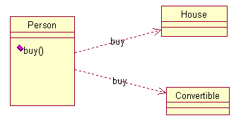 依赖也是类与类之间的连接,依赖总是单项的。依赖关系表示一个类依赖于另一个类的定义