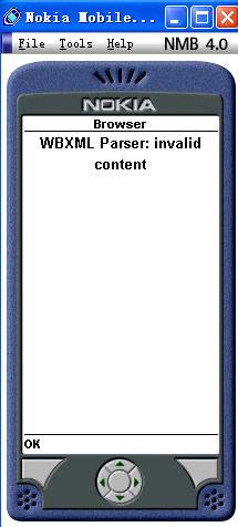 1. 直接用记事本编辑的保存上面的代码,在Nokia Mobile Browser 4.0中 汉字 显示 全是乱码。效果如下: