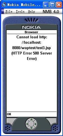 6. 删除<% response.setContentType("text/vnd.wap.wml;charset=utf-8");%>这一语句,同时<%@ page contentType="text/vnd.wap.wml;charset=utf-8" %>改为 charset="gb2312",出现如下错误: