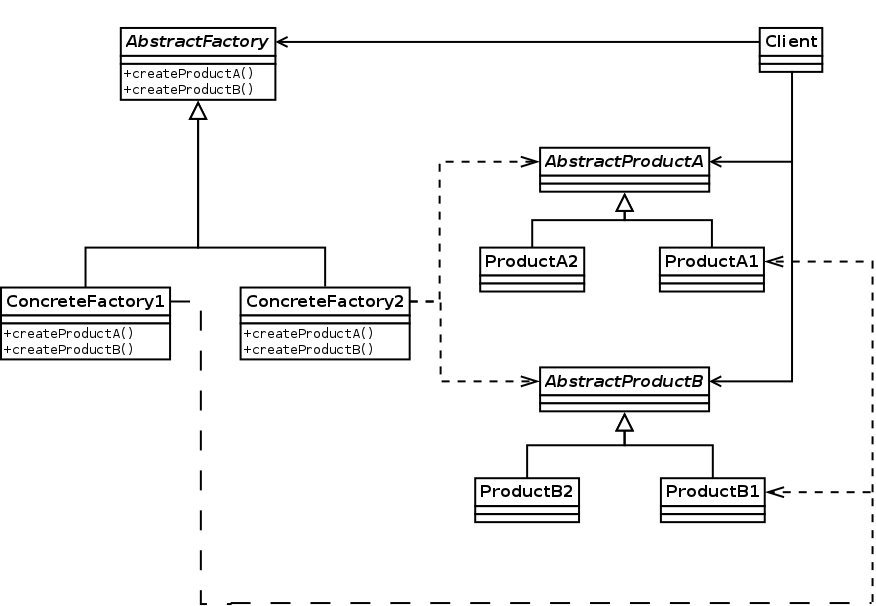 public class Client {/** * @param args */public static void main(String[] args) {// TODO Auto-generated method stubSystem.out.println(args[0]);AbstractFactory f = null;switch (Integer.parseInt(args[0])) {case 1:System.out.println("select 1 series Factory");f = new ConcreteFactory1();break;case 2:System.out.println("select 2 series Factory");f = new ConcreteFactory2();break;default:System.out.println("wrong command parameter");System.exit(2);}ProductA pa = f.getProductA();ProductB pb = f.getProductB();pa.operationA();pb.operationB();}}