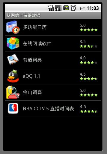 上面的布局文件是一个ListView中的list_item布局,在一个ListView中显示所有的APK资源,每个资源项显示图标,名称及评分。在listItem的最外层LinearLayout中加android:gravity="center_vertical",设定内容垂直居中显示。在id为rl_score的RelativeLayout中设定android:layout_width="fill_parent"来填充剩余空间;android:gravity="right"设定内容相对于rl_score右对齐;android:padding="10dp"设定RelativeLayout中的内容相对RelativeLayout的边缘的边距为10dp。