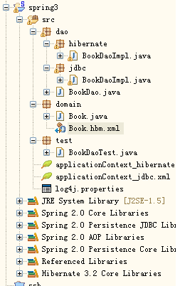 spring学习实例之spring对hibernate的支持1、包结构:2、源代码:Book.javaBookDaoTest.java