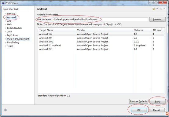 1)、点击myeclipse Window ? preferences(首选项) ? Android ? SDK Location