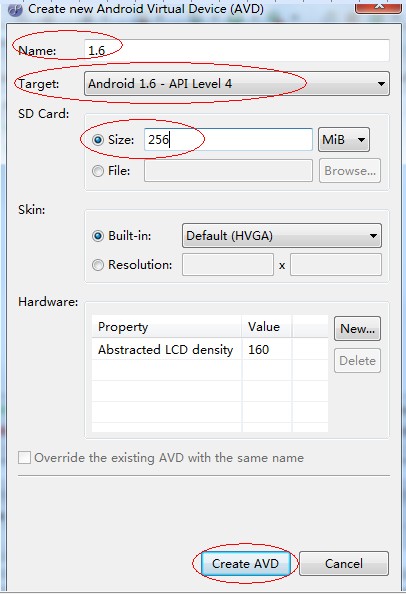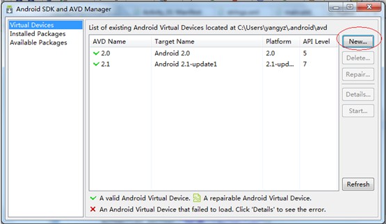 3)、点击右侧面板的New,配置模拟器,然后点击Create AVD完成配置。