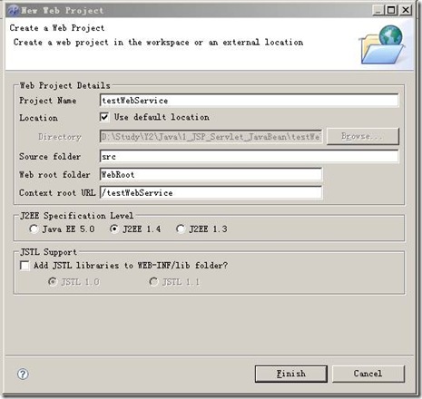 1. 创建一个WebService项目。(不需要是Java EE 5.0)