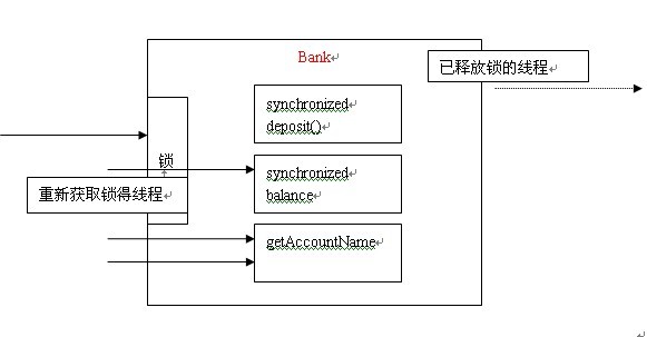 public class Bank {private int money;public synchronized void deposit(int m){money += m;}public synchronized int balance(){return money;}public String getAccountName(){return "Technoboy";}}BankTest类: