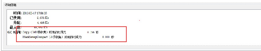 说明采用mark-compact算法的养老区还没有执行GC,(0项收集);
