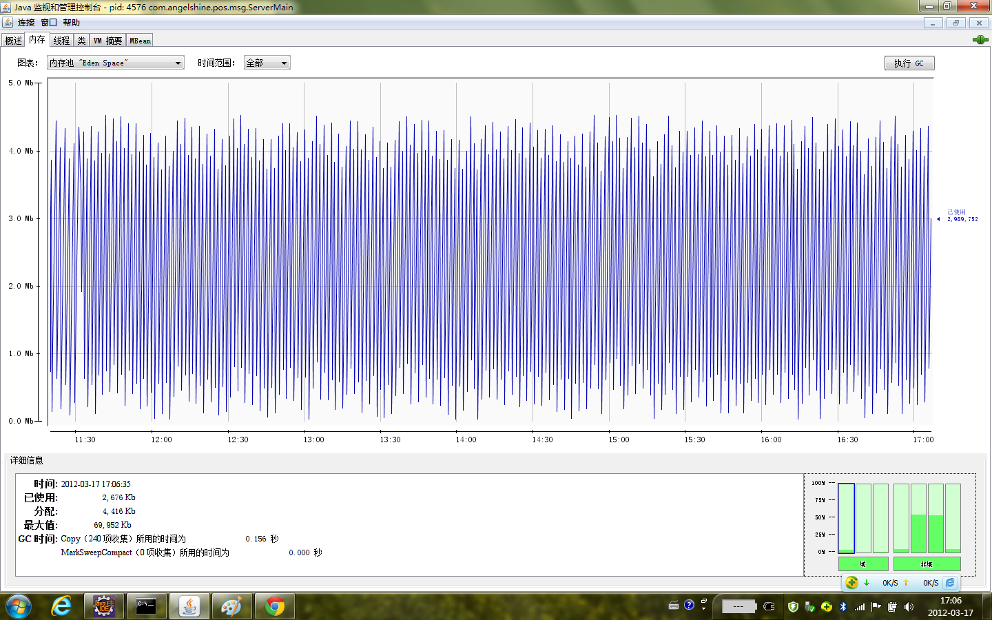 这个是新生代内存,从图上来看,整体的运行内存还是比较稳定的。