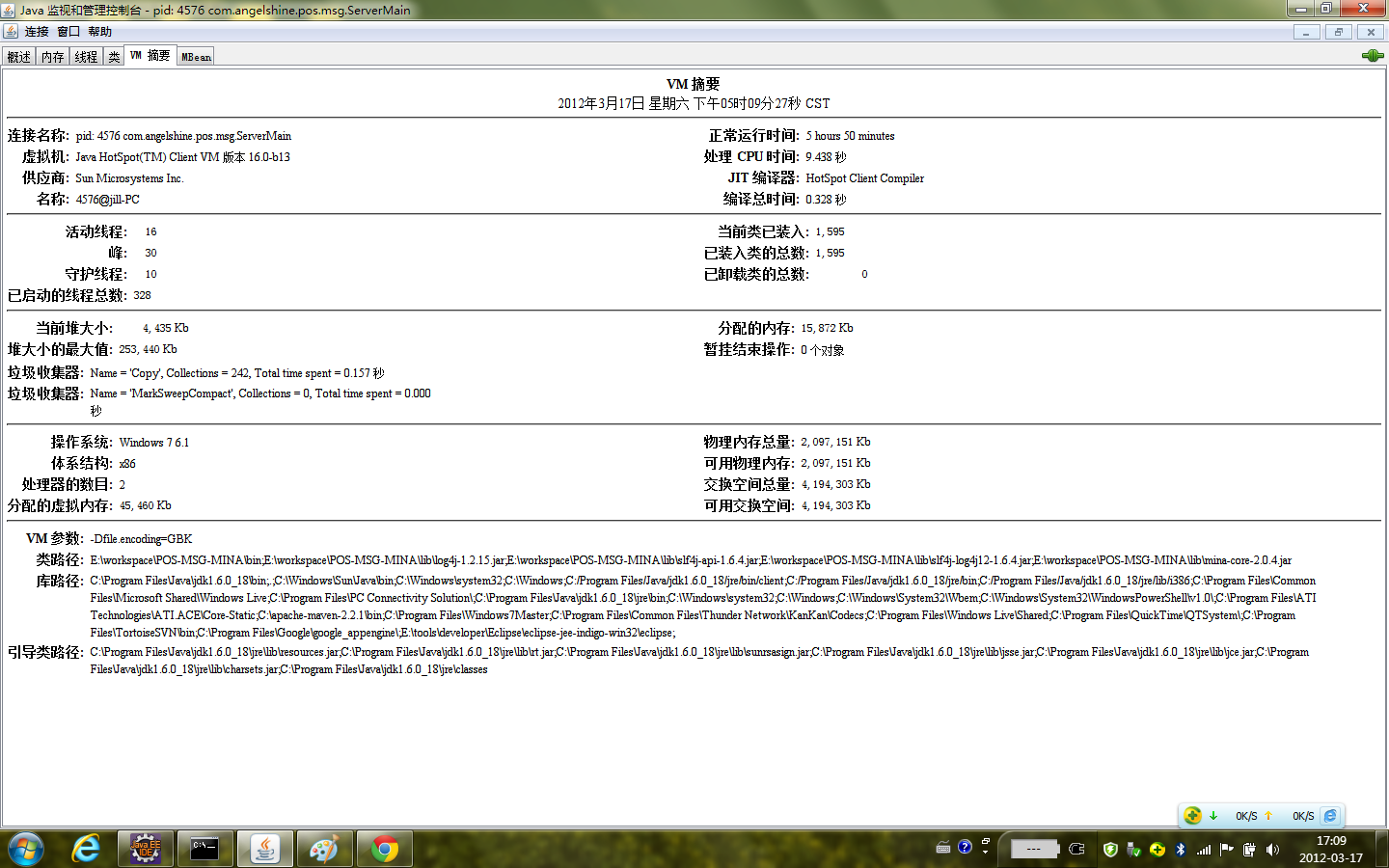 第四个TAB页签,能够看到当前的JVM信息