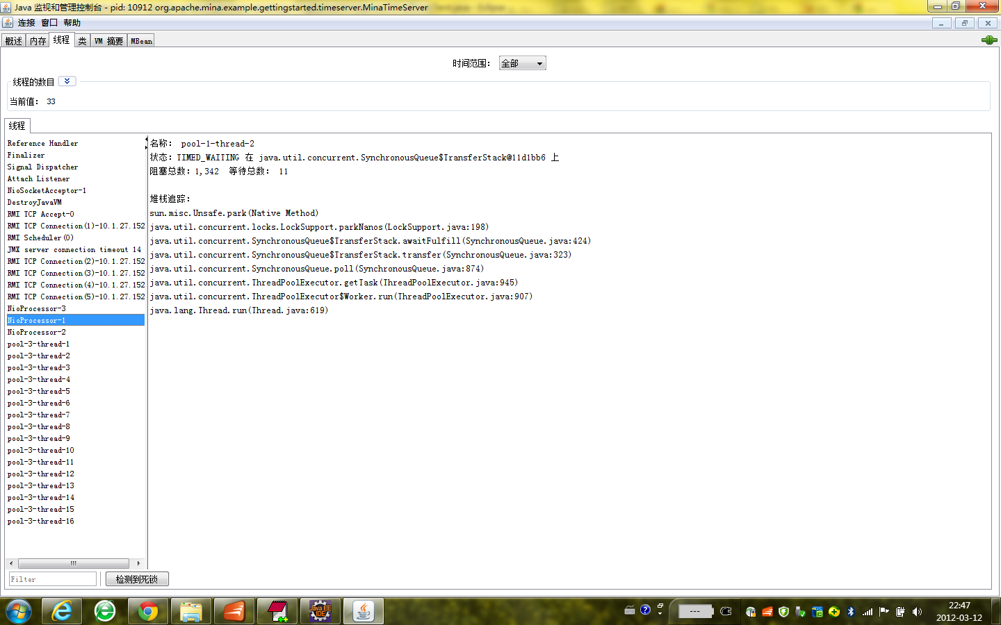 第三个TAB页签,能看到当前的线程数