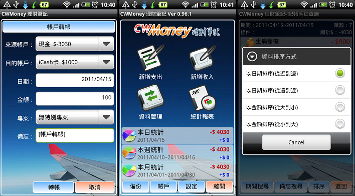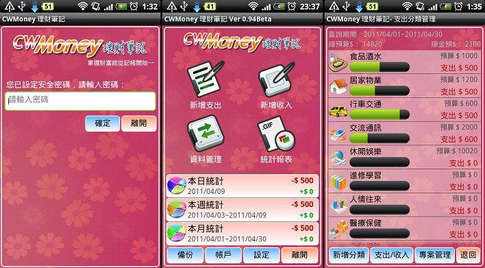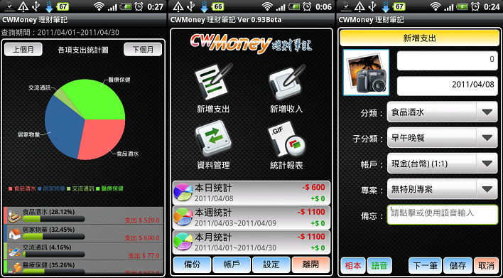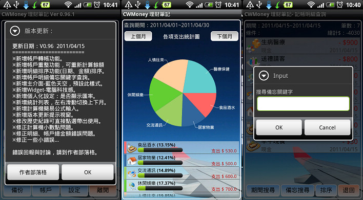 CWMoney理财札记 免费Android记帐软件Ver 0.96.1发布