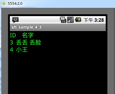package xiaohang.zhimeng;import android.app.Activity;import android.content.ContentResolver;import android.database.Cursor;import android.graphics.Color;import android.net.Uri;import android.os.Bundle;import android.provider.ContactsContract;import android.widget.TextView;public class Activity01 extends Activity {//查询Content Provider时希望返回的列String [] columns = {ContactsContract.Contacts.DISPLAY_NAME,ContactsContract.Contacts._ID, //People._ID,//People.NAME};Uri contactUri = ContactsContract.Contacts.CONTENT_URI;TextView tv;//Uri contaUri = Contacts.People.CONTENT_URI; @Override public void onCreate(Bundle savedInstanceState) { super.onCreate(savedInstanceState); setContentView(R.layout.main); tv = (TextView)findViewById(R.id.tv); String result = getQueryData(); tv.setTextColor(Color.GREEN); tv.setTextSize(20.0f); tv.setText("ID\t名字\n" + result); } //获取联系人列表的信息,返回 String对象 public String getQueryData(){ String result = ""; //获取ContentResolver对象 ContentResolver resolver = getContentResolver(); Cursor cursor = resolver.query(contactUri, columns, null, null, null); //获得_ID字段的索引 int idIndex = cursor.getColumnIndex(ContactsContract.Contacts._ID); //获得Name字段的索引 int nameIndex = cursor.getColumnIndex(ContactsContract.Contacts.DISPLAY_NAME); //遍历Cursor提取数据 for (cursor.moveToFirst();(!cursor.isAfterLast());cursor.moveToNext()) {result = result + cursor.getString(idIndex) + "\t";result = result + cursor.getString(nameIndex)+ "\t\n";} cursor.close(); return result; }}