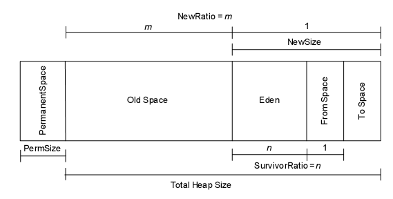 java堆由Perm区和Heap区组成,Heap区则由Old区和New区组成,而New区又分为Eden区, From区, To区,Heap = {Old + NEW = { Eden, From, To } },见图1所示。