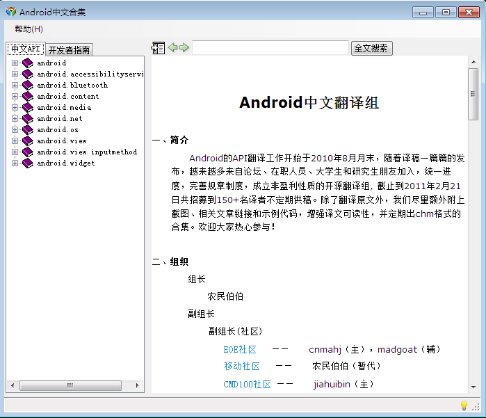 本合集包含Android 141章节的API和12篇开发者指南,包含以往历次发布的合集内容。Android中文翻译组是一个非盈利性质的开源组织,聚一批开发人员、大学生、研究生等Android爱好者,利用业余时间对Android相关的API及开发者指南等进行翻译,至今已超过200人报名参与,欢迎加入,联系Mail:over140@gmail.com,关于翻译组的更多介绍,请看这里。