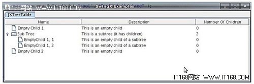 图 3 中的树形表是 SwingX 组件的一个示例: