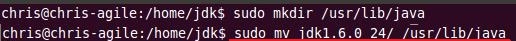 sudo mkdir /usr/lib/javasudo mv jdk1.6.0_24/ /usr/lib/java