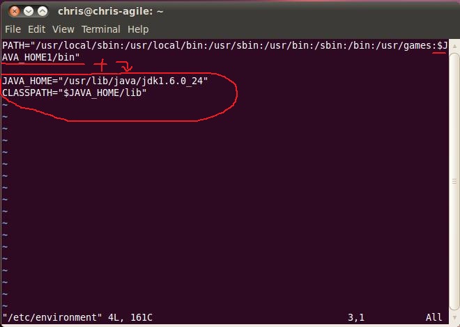 '命令行变量,因为environment文件中已存在PATH变量,因此在其后面追加即可PATH="......:$JAVA_HOME/bin"'JDK主目录变量JAVA_HOME="/usr/lib/java/jdk1.6.0_24"'JRE变量CLASSPATH="$JAVA_HOME/lib"