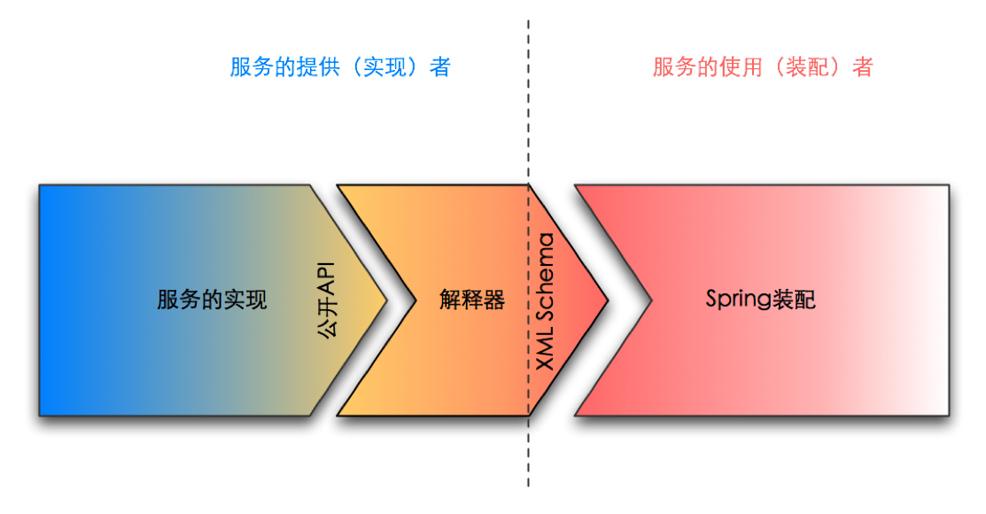 每个schema都会有一个解释器。解释器是有服务的开发者提供的。解释器会将符合标准的xml schema转换成Spring能读懂的beans定义。