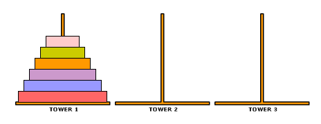 汉诺塔的java实现 汉诺塔问题描述: 假设有三个命名为X(TOWER 1),Y(TOWER 2),Z(TOWER 3)的塔座,在塔座X上有n个直径大小各不相同,依次从小到大编号为1,2,3,...,n的圆盘。现要求将X塔座上的n个圆盘移到Z塔座上并按同样顺序叠排,圆盘移动时必须遵循下列规则:1)每次只能移动一个圆盘;2)圆盘可以插在X,Y,Z中的任意塔座上;3)任何时刻都不能将一个较大的圆盘压在较小的圆盘之上。