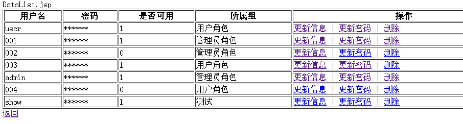 用户列表信息 普通用户只可做更新信息 对于更新密码 删除只有角色是管理可以操作