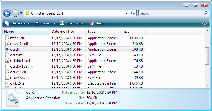 Unzip the packages into a single directory such as "C:\instantclient_11_1".