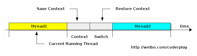 上下文切换的精确定义可以参考: http://www.linfo.org/context_switch.html. 下面做个简单的介绍. 多任务系统往往需要同时执行多道作业.作业数往往大于机器的CPU数, 然而一颗CPU同时只能执行一项任务, 如何让用户感觉这些任务正在同时进行呢? 操作系统的设计者巧妙地利用了时间片轮转的方式, CPU给每个任务都服务一定的时间, 然后把当前任务的状态保存下来, 在加载下一任务的状态后, 继续服务下一任务. 任务的状态保存及再加载, 这段过程就叫做上下文切换. 时间片轮转的方式使多个任务在同一颗CPU上执行变成了可能, 但同时也带来了保存现场和加载现场的直接消耗.