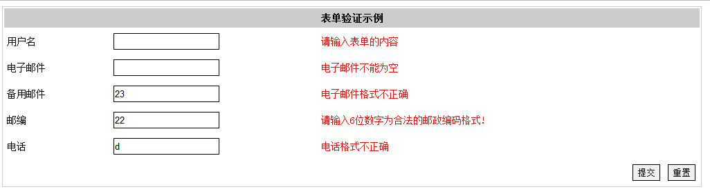 验证要求:在表单的失去焦点事件和表单提交时进行验证