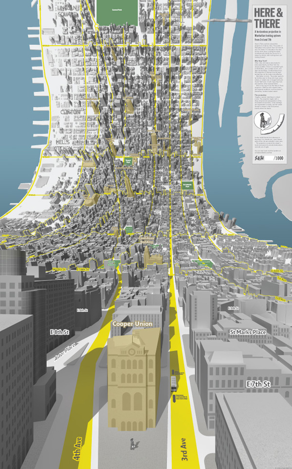 再举一个例子,通常的地图,都是俯瞰图,整个地图保持同一种视角。能不能在同一张地图中包含多个视角?听起来匪夷所思,但是有人尝试了这种新奇大胆的设想,见figure 1。如果套用DOM Tree和Rendering Tree的概念,可以解释为DOM Tree与Rendering Tree不完全一致。上半段的俯瞰视角的地图,对应的Rendering Tree的子树,与DOM Tree相关子树一一对应。但是下半段的平视视角的地图,对应的Rendering Tree的子树,是DOM Tree相关子树的一个子集,因为有些楼宇和道路,被前方的楼宇遮挡住了。