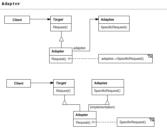 若client所调用的target是一个接口,则adapter可以继承adaptee并实现target接口,这样就可通过处理adaptee来适配target接口供client调用。