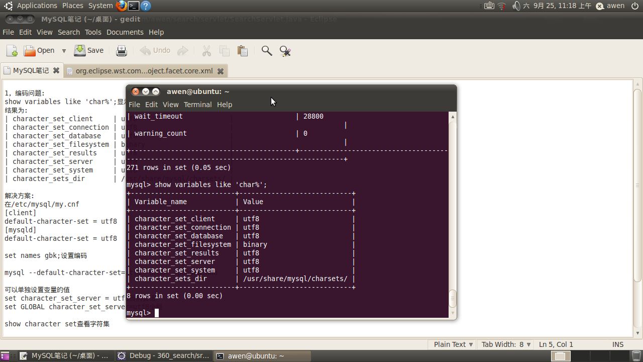 sudo apt-get install mysql-server等,工程统一编码为UTF-8,而mysql安装后默认为latin1