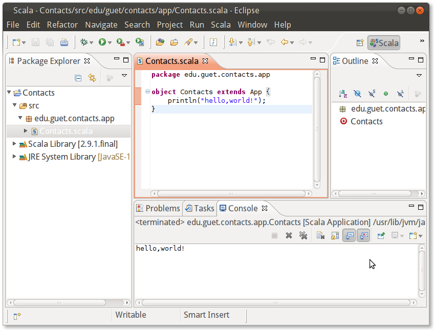 在eclipse中安装了scalaide之后写一个简单的scala的hello,world程序。