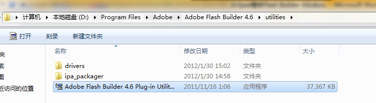 并在Adobe Flash Builder 4.6\utilities的安装目录下找到Adobe Flash Builder 4.6 Plug-in Utility.exe