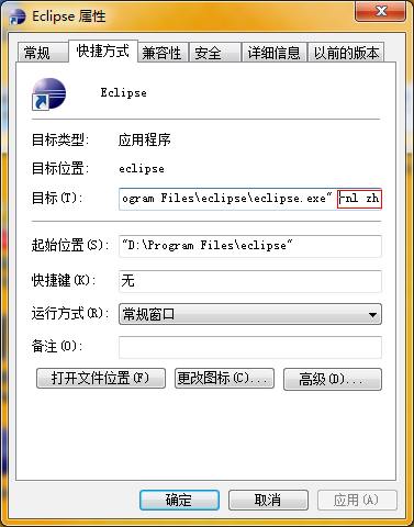 Eclipse.exe -nl zh #不习惯中文当然还可以切换为en文