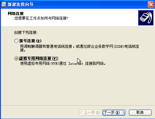 选择“虚拟专用网络连接”,再点击“下一步”按钮