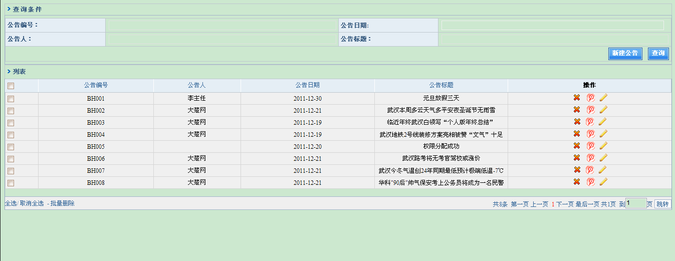 java--项目开发的一些基本功能212很简单的增删查改 , 无难度 ..让我纠结了一会的就是 .图2的公告标题的信